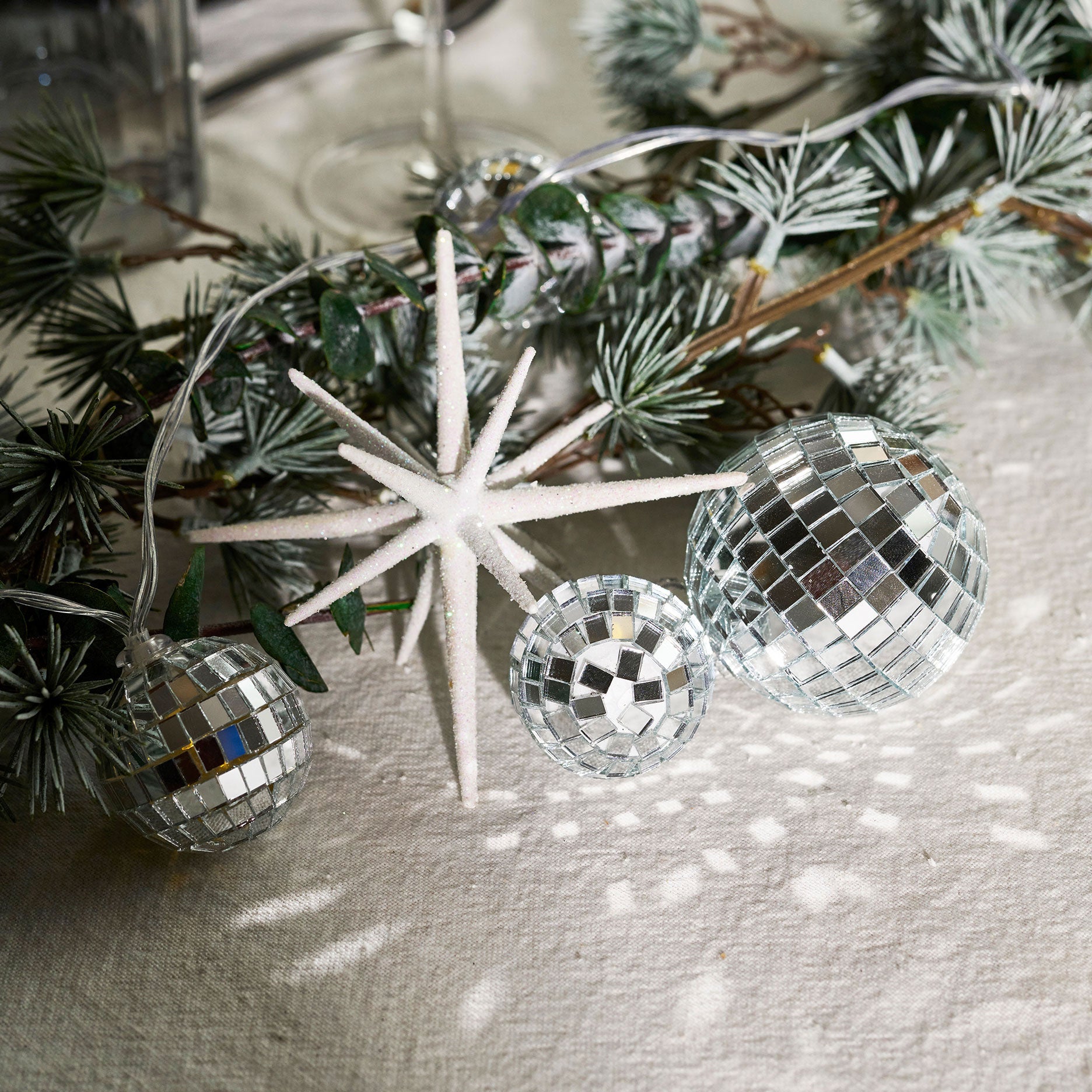Zur Weihnachts- und Silvesterzeit wird das Zuhause zur festlichen Bühne. Glitzernde Dekorationen bringen Eleganz und Wärme auf den Tisch und verbinden die gemütliche Weihnachtsstimmung mit dem funkelnden Glanz des Jahreswechsels. Mit schimmernden Details entsteht eine festliche Atmosphäre, die beide Anlässe stilvoll begleitet.