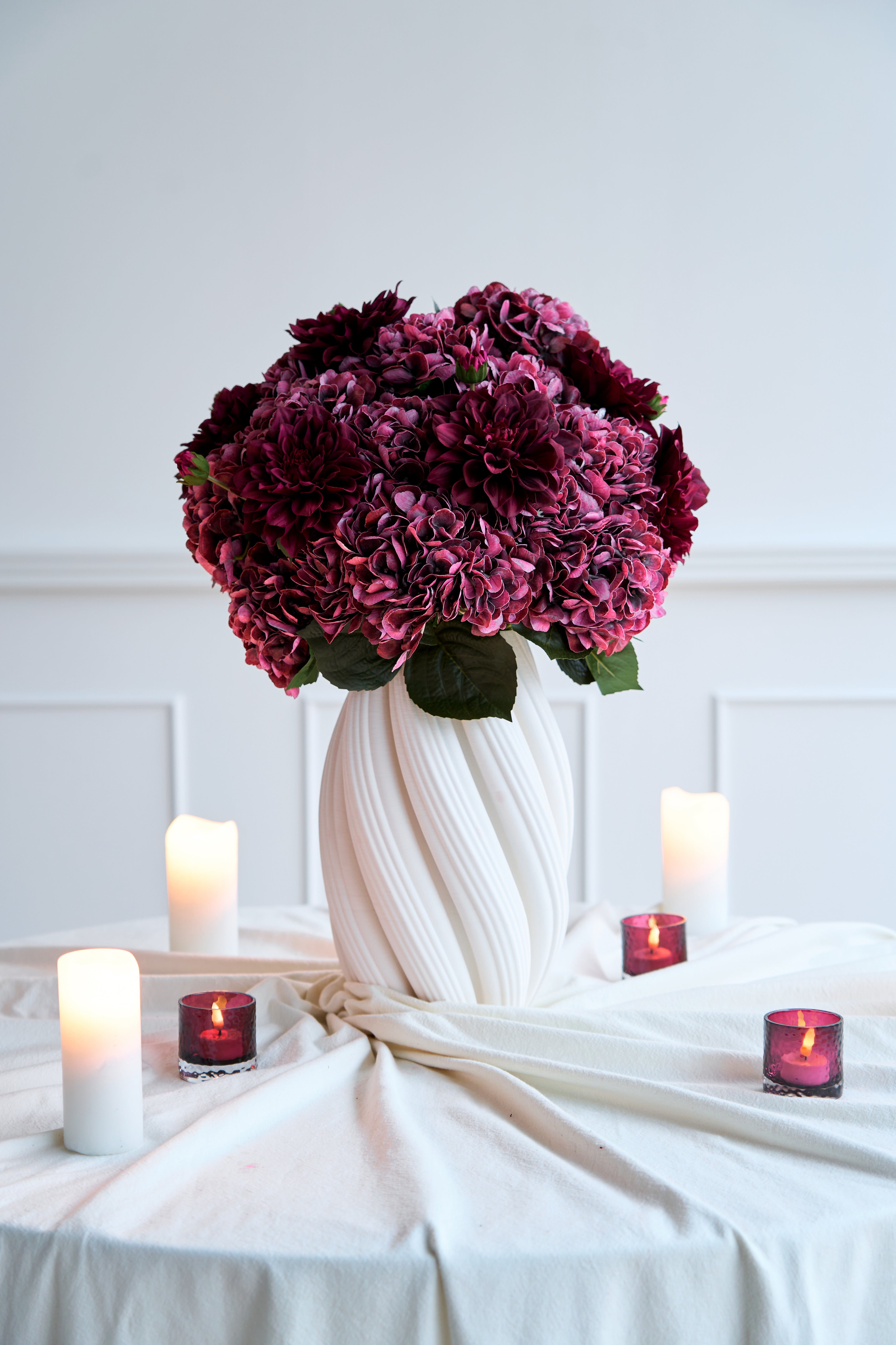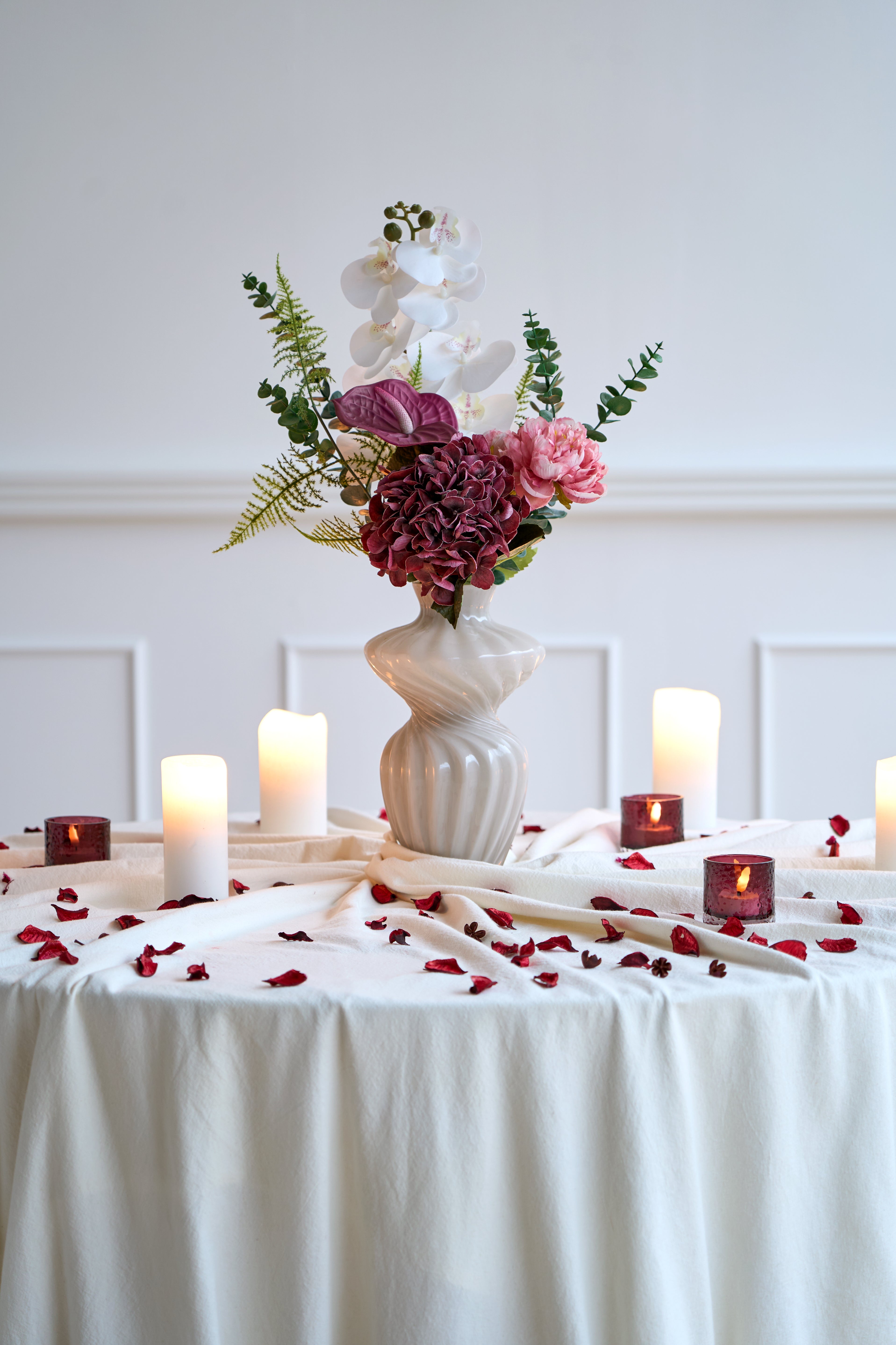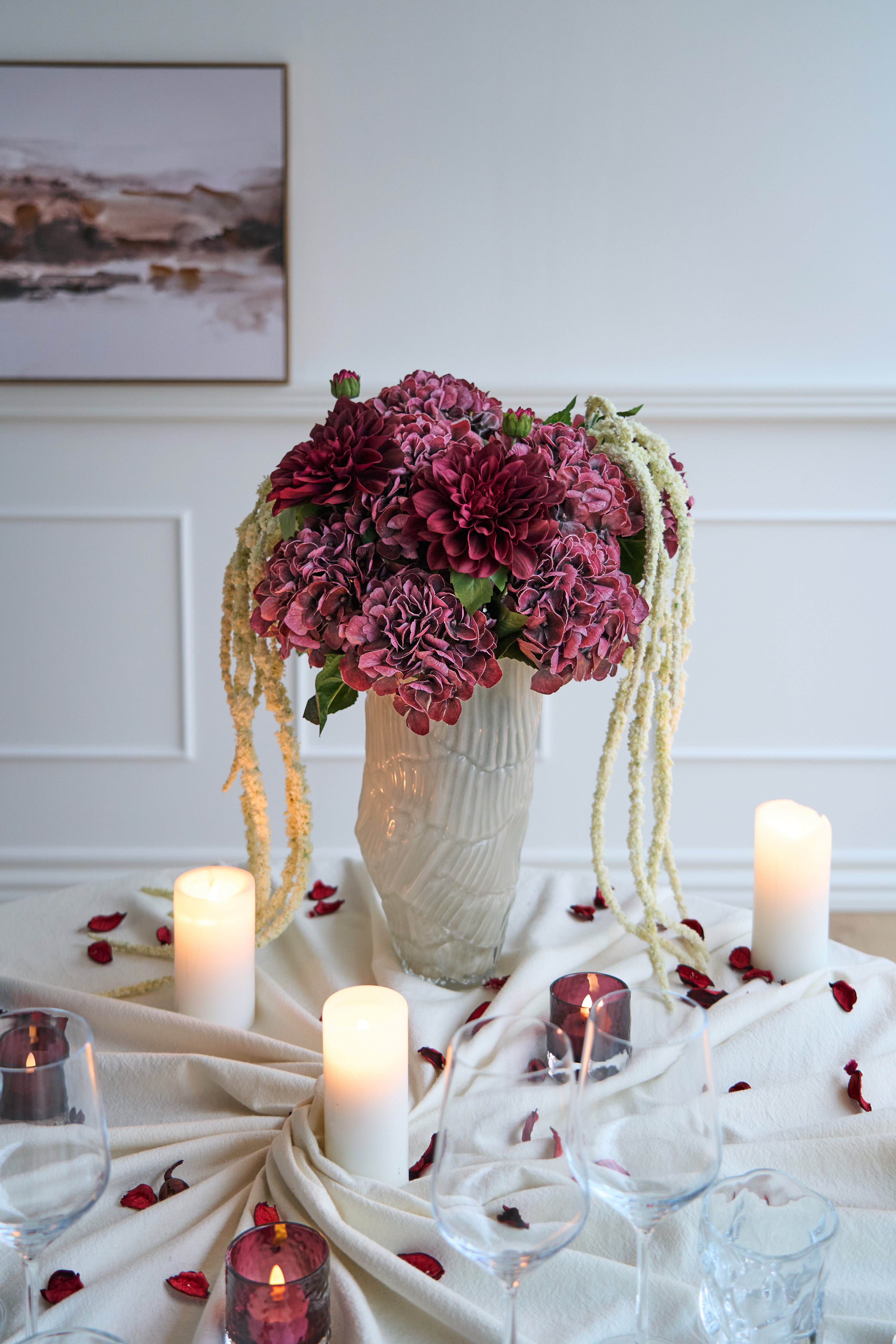 Tipp: Mix & Match Kerzenhalter, Vasen und Blumen für eine persönliche Note.