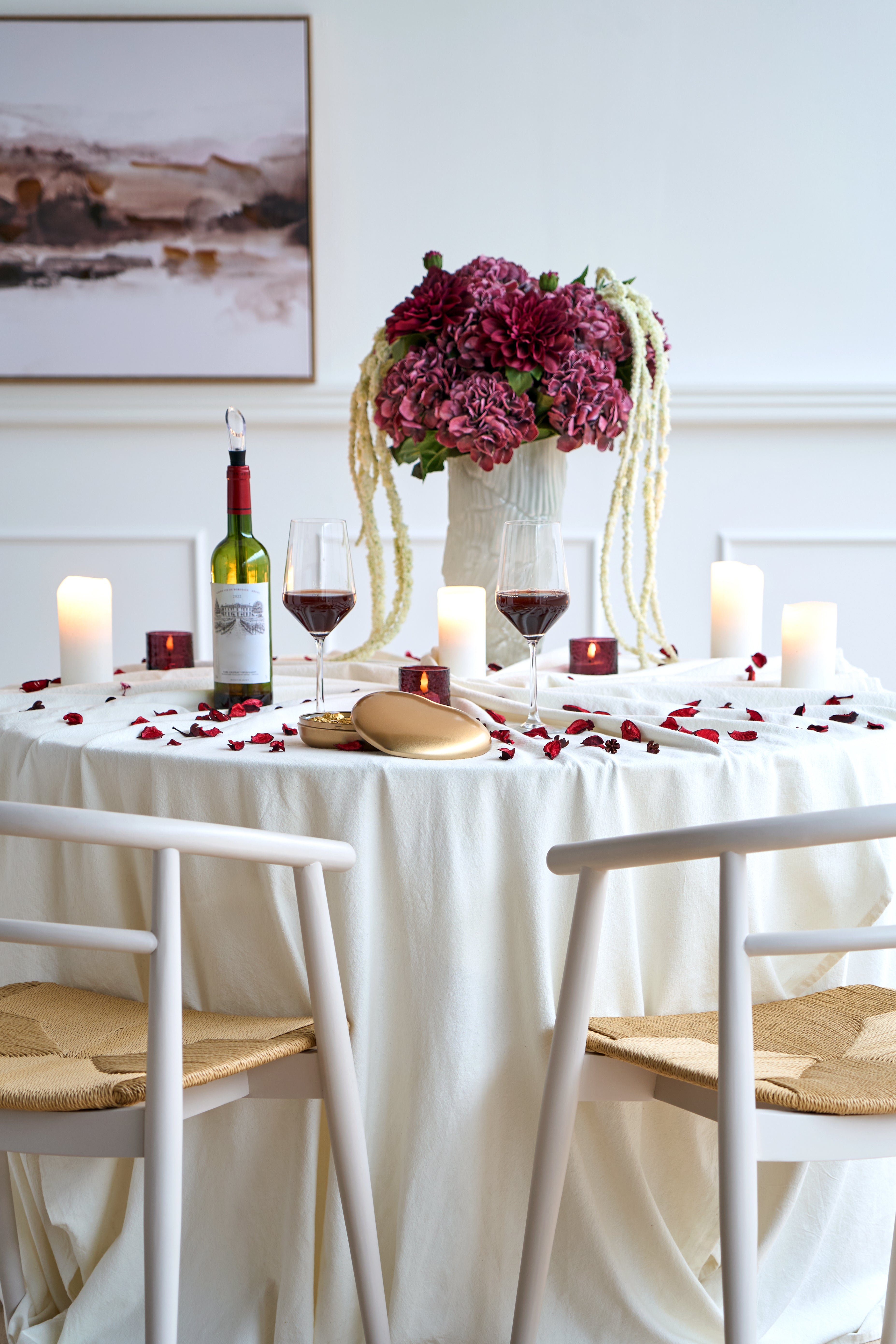Gestalte zu Hause eine gemütliche und romantische Stimmung - mit schöner Tischdekoration, Kerzen und kleinen liebevollen Details, die den Abend besonders machen.