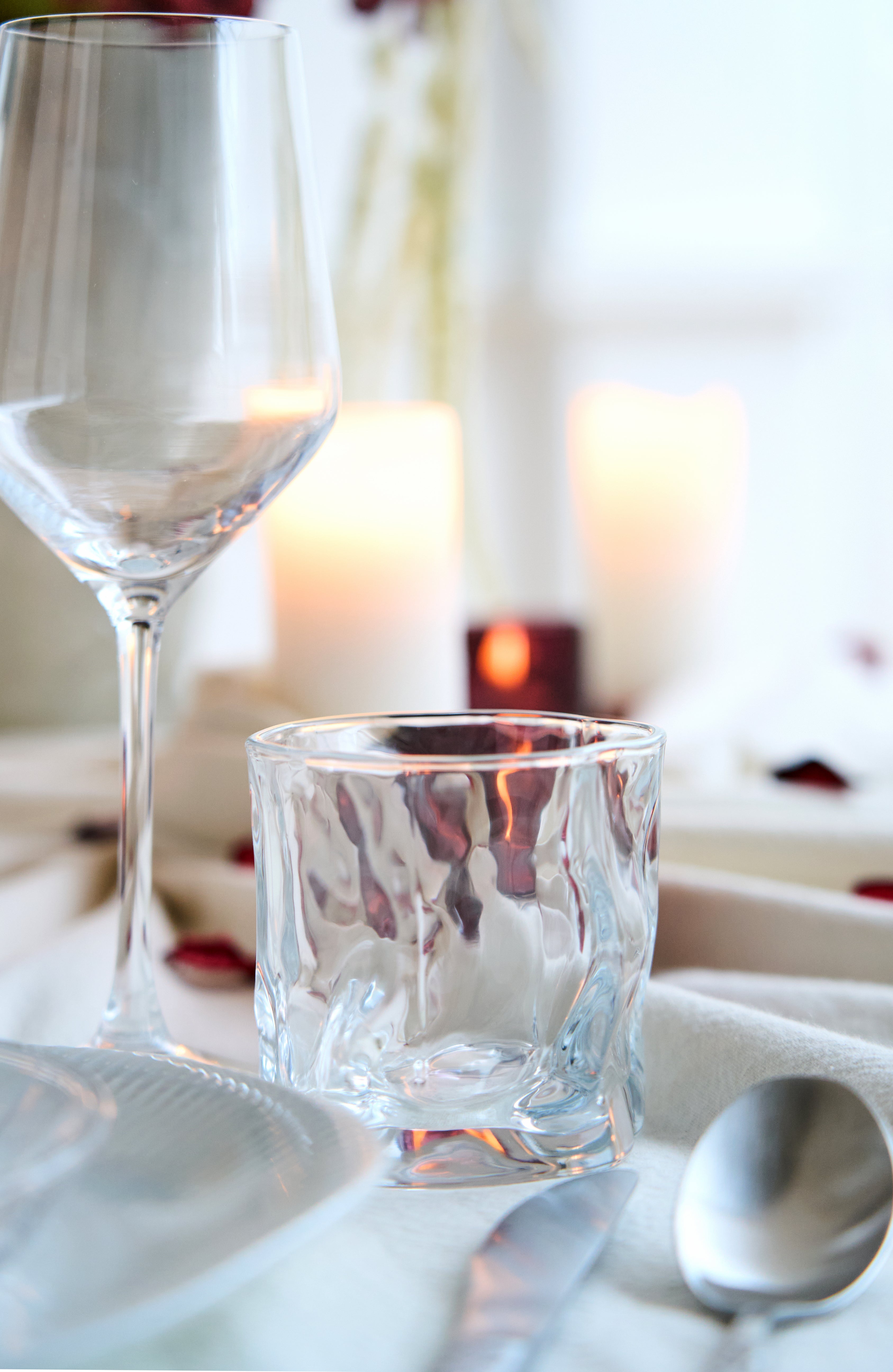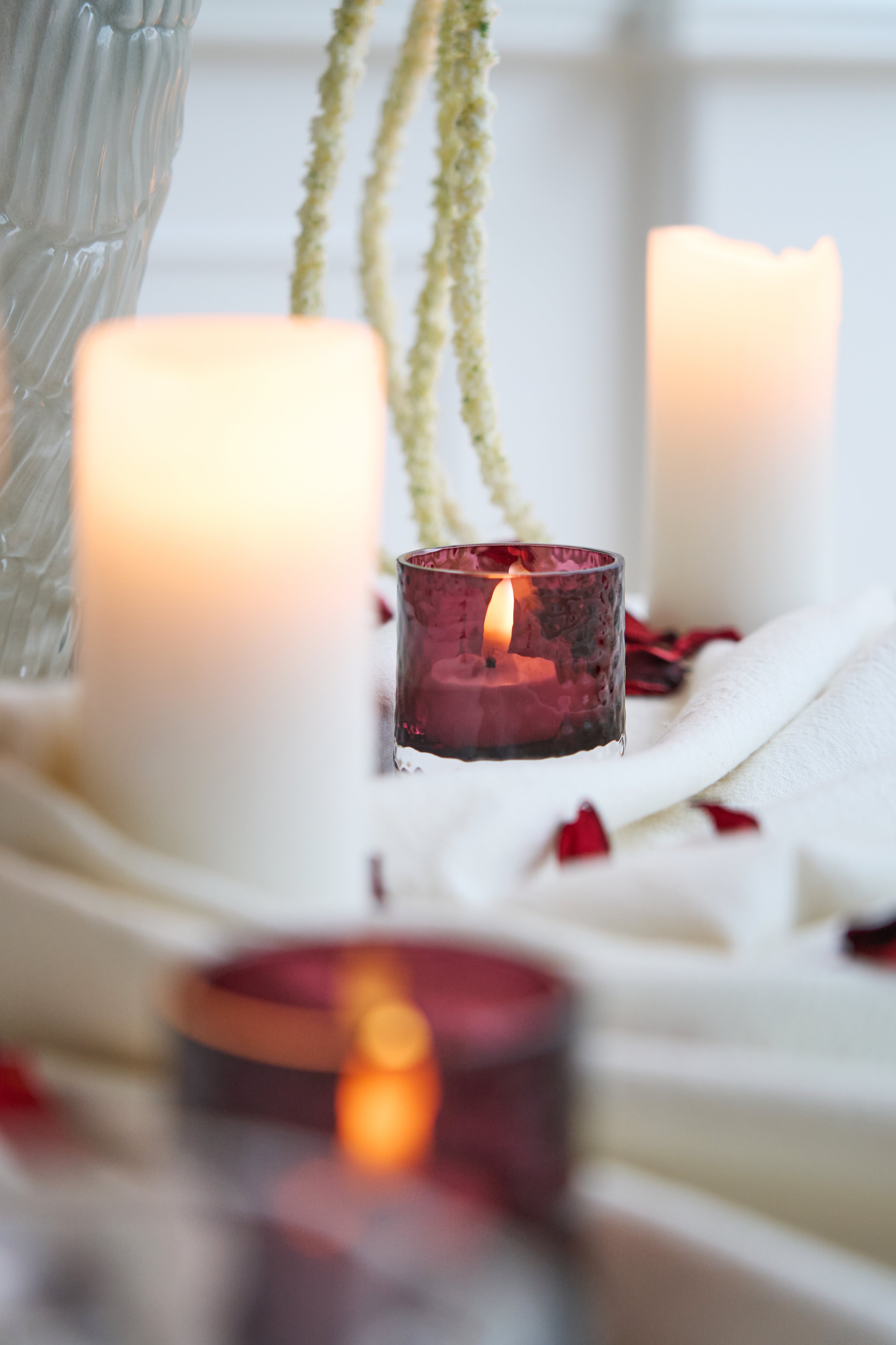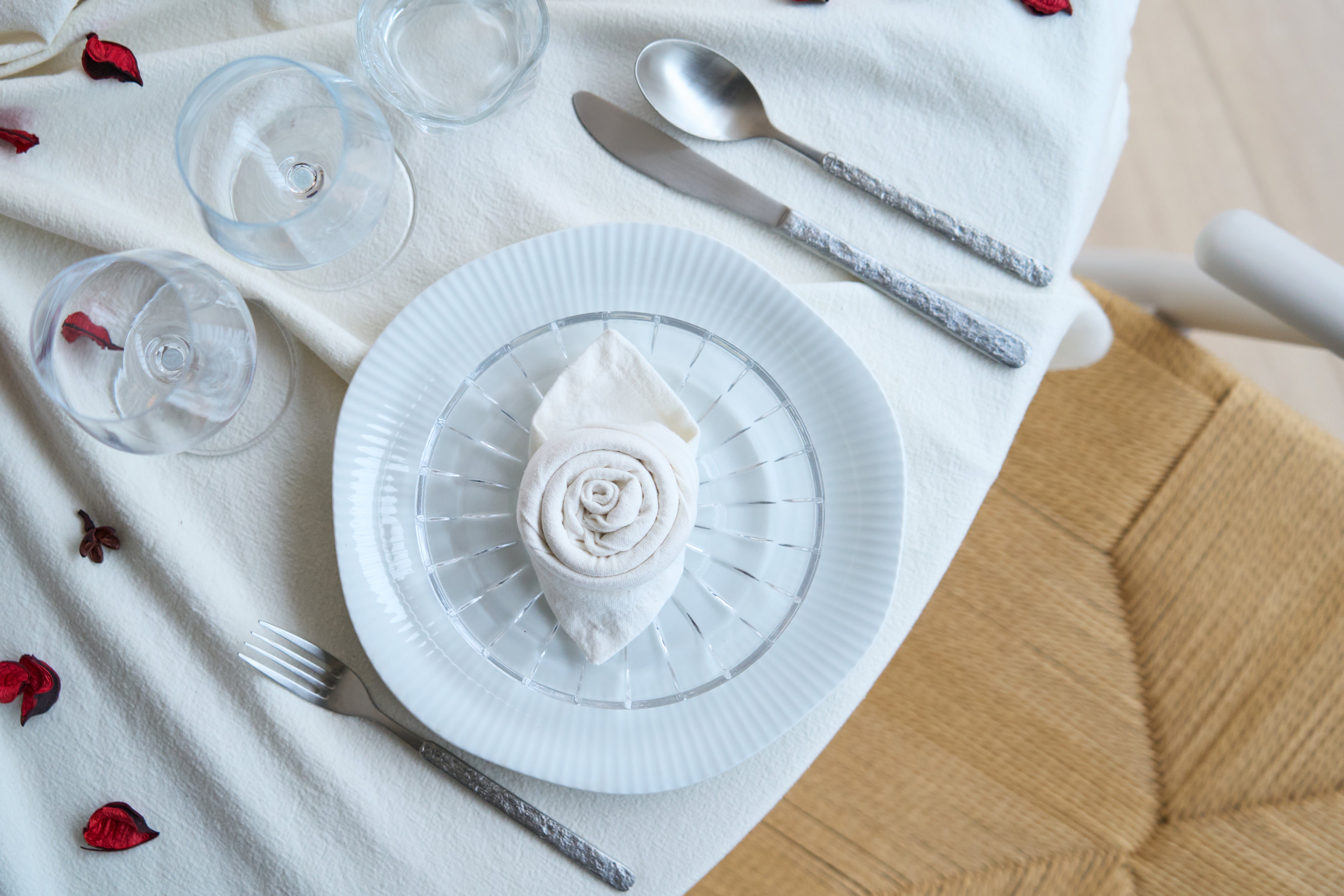 Dekoration zaubert Magie auf den Tisch. Verwende weiche Textilien, kleine Details und künstliche Blumen für einen romantischen Touch, der den ganzen Abend anhält.